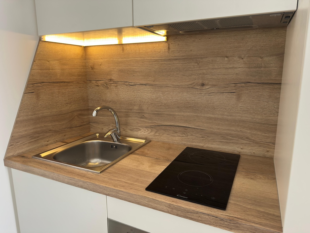Per voi, intero appartamento da 45 m² con cucina completa di forno, frigorifero e accessori. Una camera da letto matrimoniale con bagno in suite, e un terzo letto, sul comodo soppalco che dà accesso autonomo al doppio servizio e alla lavasciuga. Altri servizi principali: aria condizionata, TV a schermo piatto, macchina da caffè, WiFi gratis.
